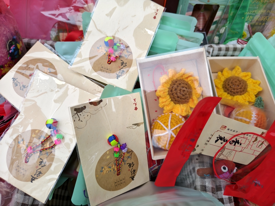 拿起来嗅一下,发现不同香囊还有些差异:有的是芬芳中透着薄荷味,有的是浓郁的艾草味,还有的略带桂花的香甜。销售人员说,这是因为每款香囊内用的香料略有差别,以适合不同场景。比如,艾草、薄荷的味道比较提神,不太适合夜晚;带有桂花甜香的,则有助于安神。