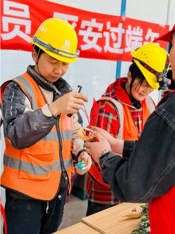 与此同时,项目部精心准备了香甜软糯的粽子,与工友们围坐一堂,亲切交谈。管理人员仔细询问工友们在工作与生活中的需求,贴心叮嘱大家在高温天气下,一定要做好防暑降温措施,时刻绷紧安全施工这根弦,确保作业安全。一个个粽子,传递着对工友的关爱;一句句叮嘱,饱含着对安全的重视。