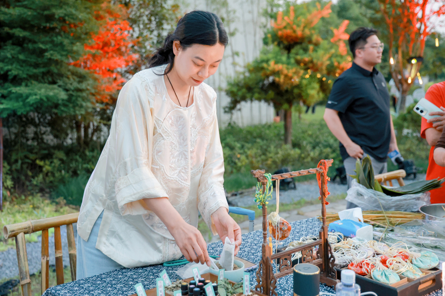 互动体验区则化身充满烟火气的邻里社交空间,以“家”为主题的场景互动区,设置非遗市集、美食市集串联其中,居民和游客既能感受来自青浦的传统非遗项目,还能品尝到来自村民们带来的各色美食,沉浸式感受友好、和谐的邻里氛围。