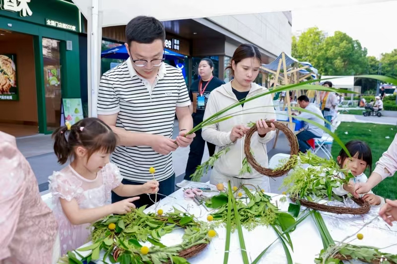 赛场上龙舟竞渡,赛场下的衍生活动同样多姿多彩,为现场氛围持续加温。在北横河南岸和浦乐汇广场的非遗市集,下沙烧卖、端午粽子、五色蛋袋、土布香囊等充满非遗文化元素集体亮相,展现了龙舟赛现场浓郁的传统民俗文化氛围。