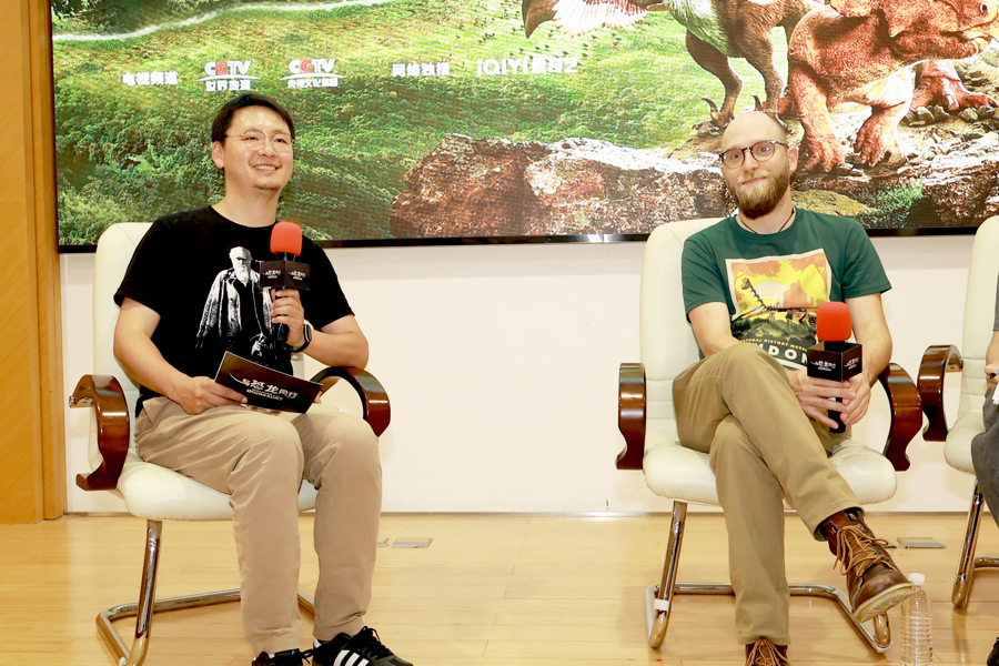 对谈环节,托马斯·斯科特与上海自然博物馆研究员何鑫博士展开精彩对话。托马斯·斯科特分享道:“如今的恐龙化石挖掘现场也是亿万年前恐龙主角们生活的地方,古今交织的叙事创新为观众呈现出身临其境的真实感。为了平衡科学性与艺术性,制作团队从现代动物的行为和考古证据中汲取灵感。在进行CGI创作时,团队成员所见的恐龙形象仅为灰色剪影,直至1200多个CGI镜头全部交付后,恐龙们才以逼真的羽毛、肌肉运动与生态行为跃然屏幕。”