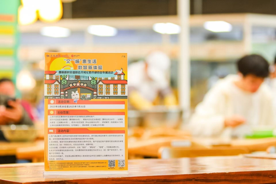 值得一提的是,5月30日至7月31日期间,还有“曹杨新村街道可视数币硬钱包专属活动”,每张可视硬钱包每日发放5元数币红包,用户可至曹杨新村街道辖内支持硬钱包消费的指定商户使用,享受单笔消费满15元(含)可抵扣5元,红包当日有效,逾期作废。武宁片区社区长者食堂、老鸿兴等广受社区居民喜爱的商铺都在此次福利活动范围内。