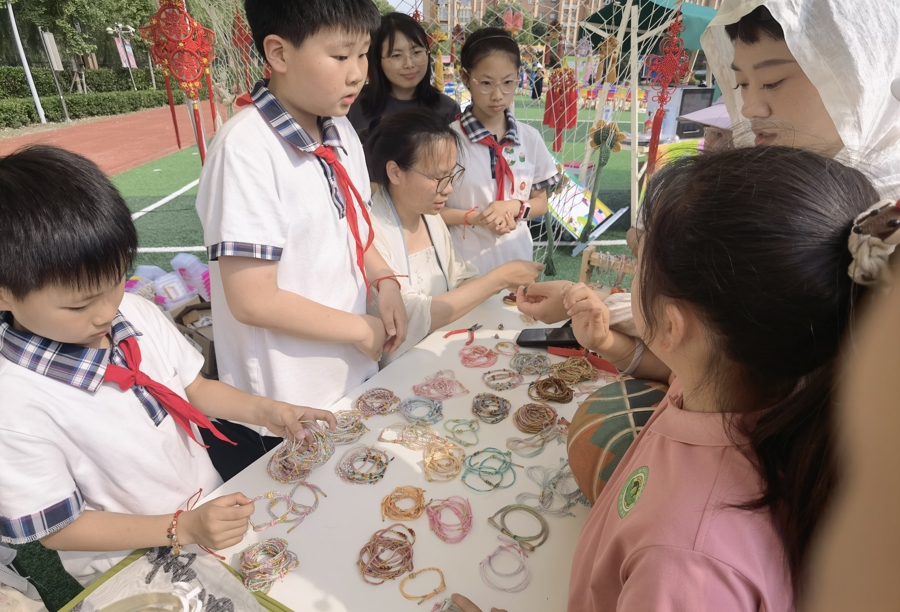 学校操场上,垃圾分类投沙包、文明养宠知识问答、环保投壶游戏等精心设计的互动游戏,让小朋友们在玩耍中不知不觉就掌握了文明知识。其中,“瓶啥不收”回收站最受环保小达人们欢迎,大家排着队投入空塑料瓶,绿色环保的理念就这样种在了心里。