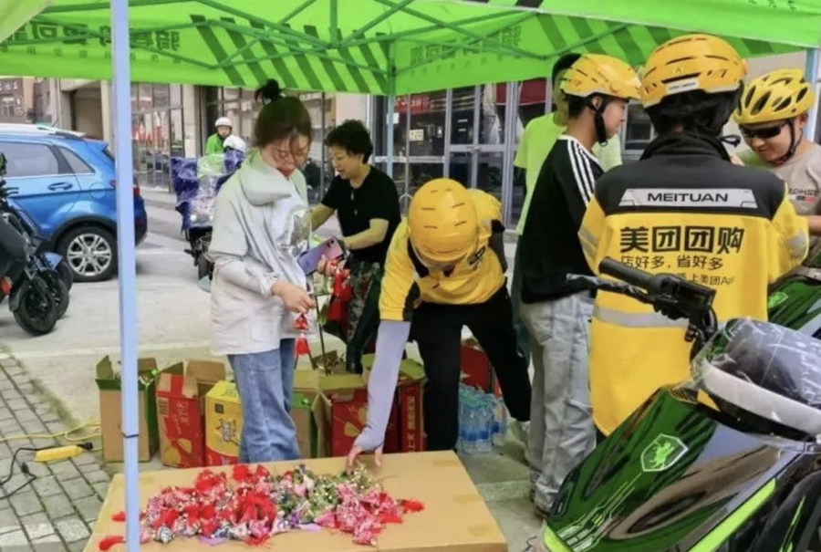 石冈门街区的爱心商户昌利车行和山江缘酒店联合开展 “端午‘递’温情” 活动,为快递外卖小哥以及独居老人、困难群众等群体,送上粽子礼盒与节日问候。活动现场粽香四溢,快递骑手陆续收到端午暖心包。打开暖心包,手工粽、艾草香囊与清凉饮料整齐码放。“这些年轻人风雨无阻保障民生,守护着大家的生活,今天换我们来给他们送温暖。”爱心商户朱先生边说边为骑手送上礼包。外卖小哥孙怀余接过暖心包,高兴地说:“平时工作忙,根本没时间过节。今天能收到这份礼包,感觉特别温暖!”