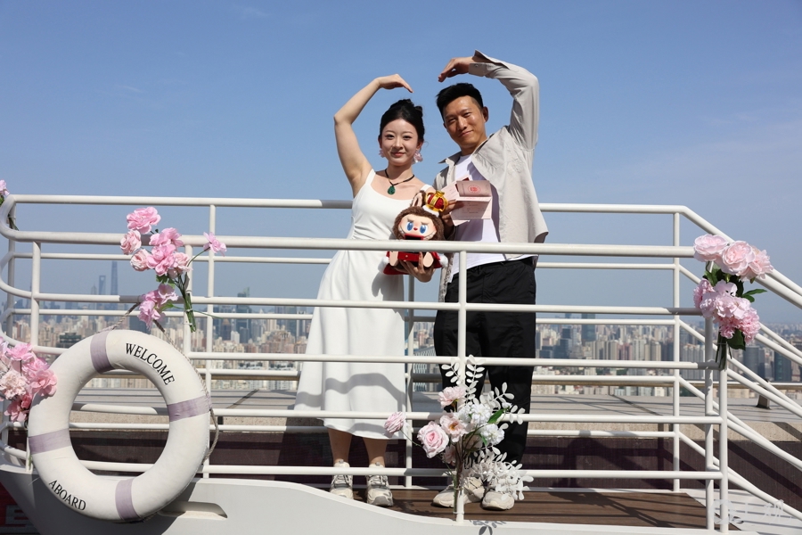 新人在环球港52层登记结婚,仪式感满满。李茂君摄