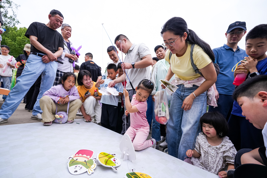 趣味游戏区中,“钓粽子”“套大鹅”“桌面冰壶”等端午特色小游戏欢声笑语不断,让传统佳节焕发童趣活力。