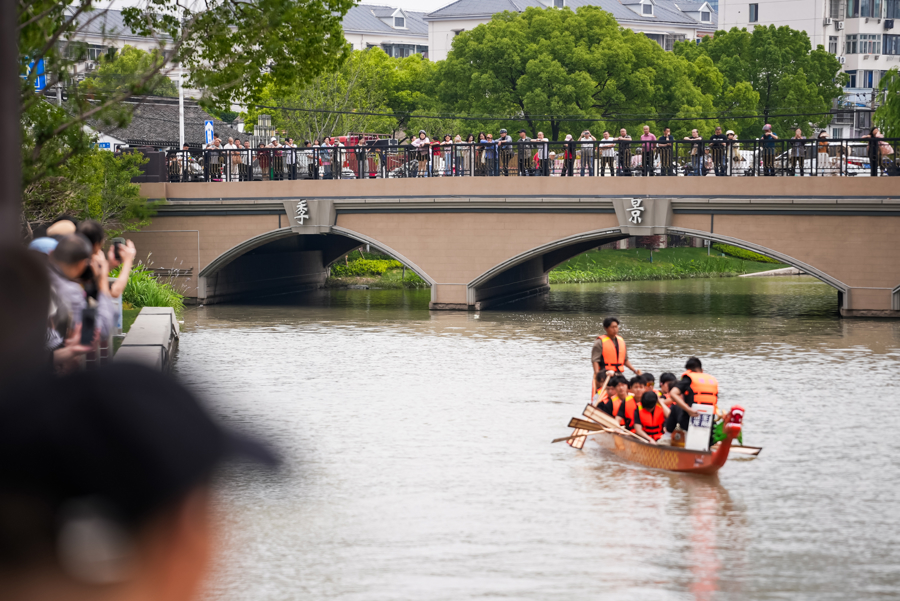 附近居民陈阿姨表示:高桥老街今天太热闹了。包粽子、划龙舟、唱沪剧我都很喜欢,明年还有包粽子比赛的话,我一定要争取拿个一等奖。”