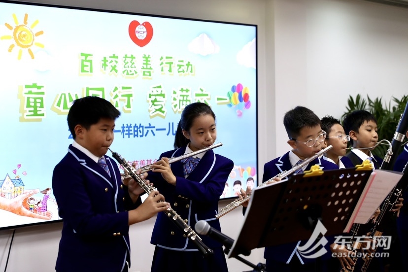 市慈善基金会副理事长丁斐平与第三十一届“蓝天下的至爱”慈善宣传大使晏秋秋共同为当天捐款的学校师生以及参与志愿服务的孩子颁发了荣誉证书,并合影留念。 当天,市慈善基金会还通过慈善义演、公益市集、项目展示等互动活动传递爱心,打造一个有温度、有意义、有创意的儿童节,让孩子们的节日成为爱的课堂。上海师范大学阿卡贝拉清唱社的哥哥姐姐们为爱心人士们带来了动听的歌曲;上海市江宁学校的孩子们献上了尤克里里和小提琴演奏;由一群孤独症孩子组成的“小马过河”启音天使合唱团的表演赢得阵阵掌声;上海市世外小学管乐队的合奏把气氛推向高潮。