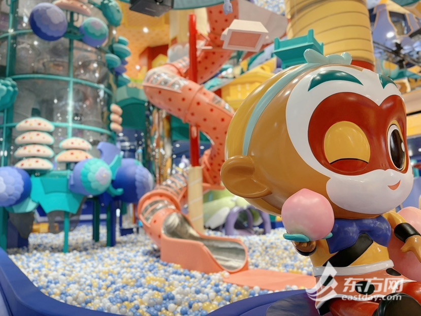 东方网记者熊芳雨6月1日报道:在《大闹天宫》里的蟠桃盛宴间嬉戏,探索《哪吒闹海》中的龙宫奇景…国内首个以上美影经典动画IP为核心的沉浸式儿童益智乐园——上美影泡泡米益智乐园于6月1日在上海环球港正式开园。孙悟空、黑猫警长等国民动画角色走出银幕,化身可触摸、可互动的游玩场景,为80、90后家长与孩童搭建起文化传承的桥梁。