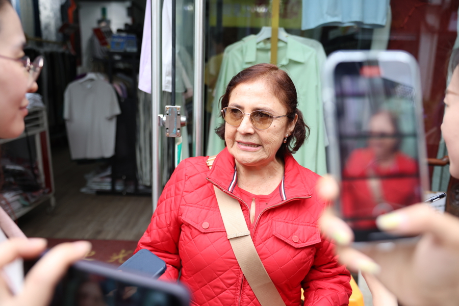 秘鲁利马市议员代表团成员、市政议员伊雷斯•罗沙(Hires Rocha)第二次来到上海。这次有机会到处走走看看,她赞叹上海这座城市的包罗万象,尤其羡慕商店里价廉物美的商品,由衷为中国百姓的幸福生活献上祝福。