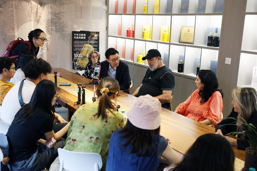在乐艺术空间,外宾们观摩了古今中西蛇的图腾。