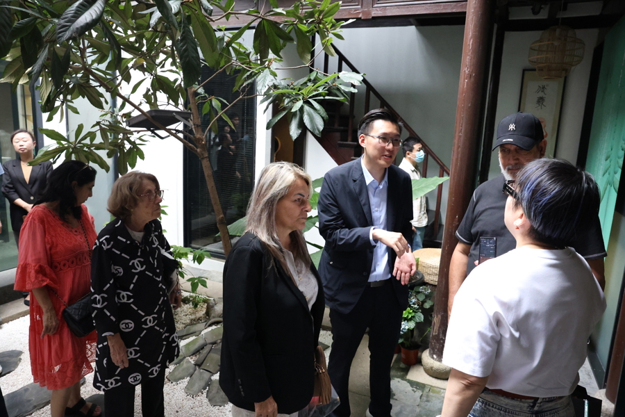 外宾们走进令竹·大关筇竹馆感,受中国江南传统建筑和造园工艺的独特魅力。