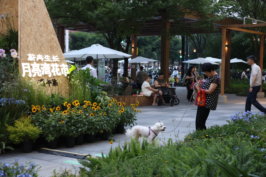 户外版月亮湾花市,成为市民休闲放松、拍照打卡好去处。