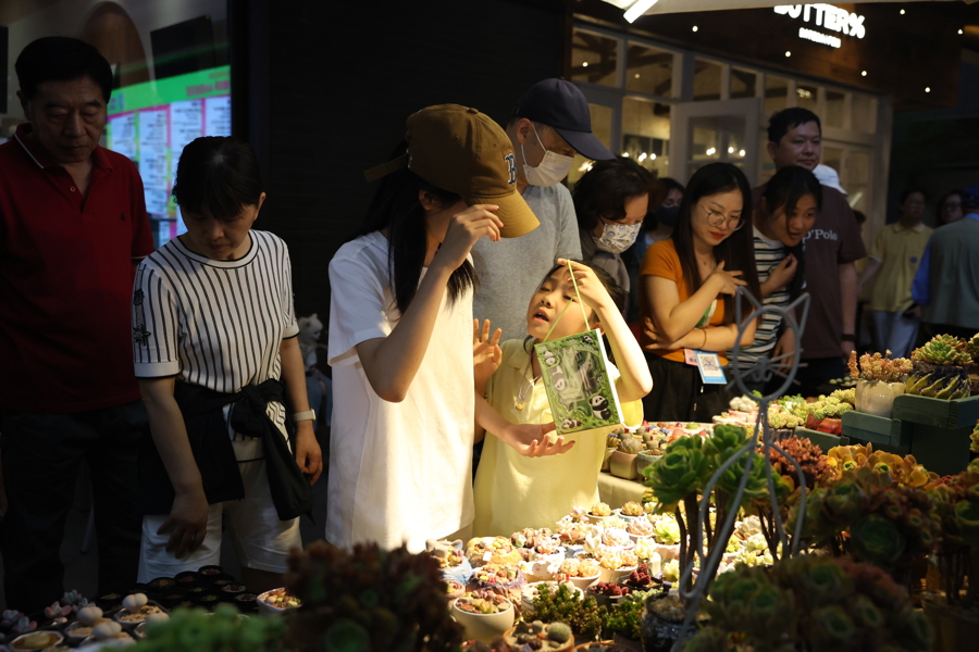 集市上憨萌可人的多肉植物,吸引了全龄段人群。