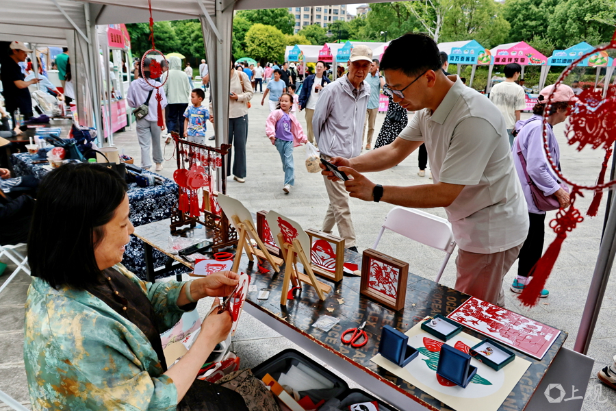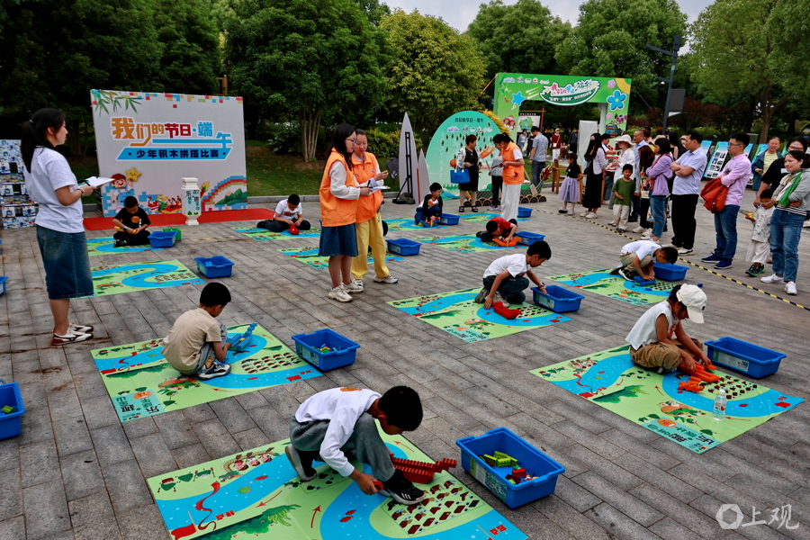 除了特色摊位,活动现场还举办了少年积木搭建任务赛,在寓教于乐中感受非遗文化的魅力,让亲子家庭提前在此过了个有意义的儿童节。