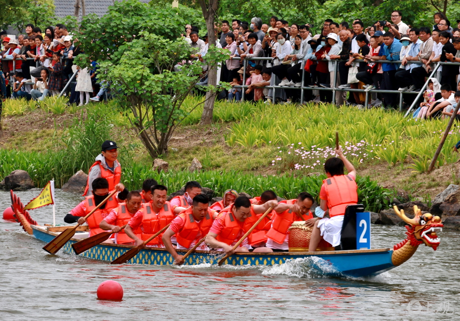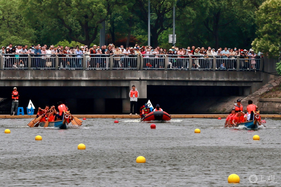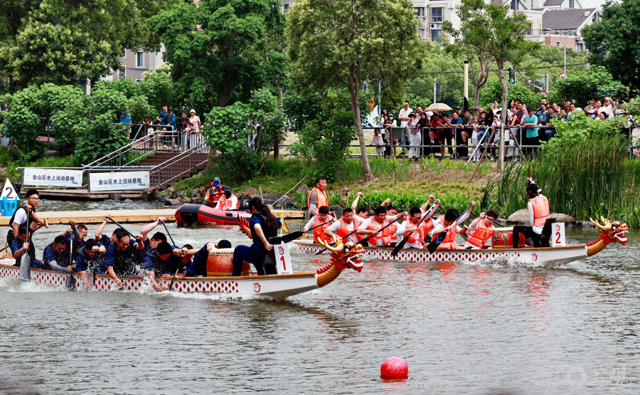 2025年5月31日,“我们的节日·端午:长三角各界青年上海城市业余联赛龙舟邀请赛暨第十四届山阳龙舟赛”在金山新城公园老红旗港举行,共有24支队伍参加,上万市民群众加油助威。