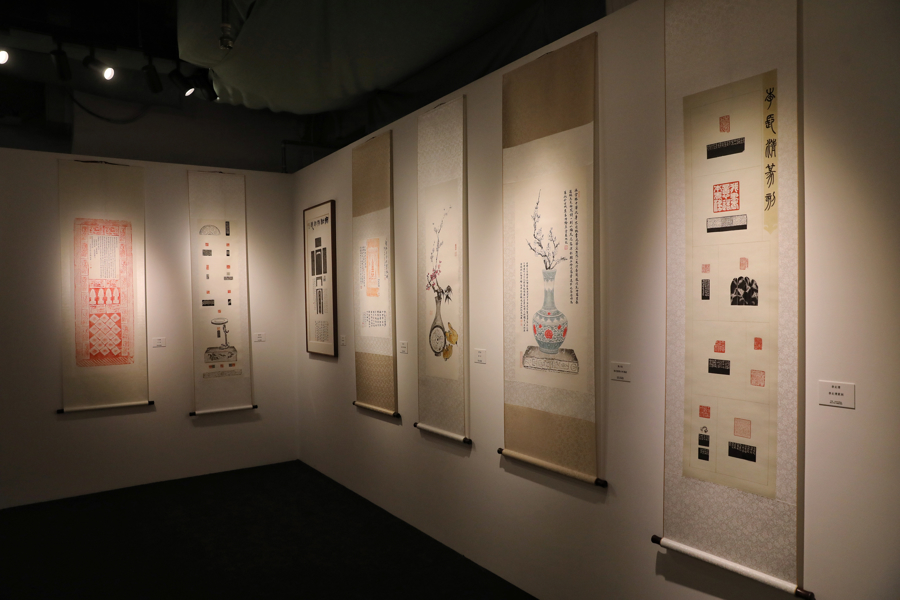 在展厅门口,巨幅“墨华”“传古”二字令人惊艳,其取自清代金石大家陈介祺箴言“书味养心存赤气,墨华传古附青云”,既是对传统文脉的致敬,亦是对工作室教学宗旨的凝练。