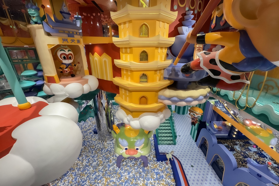 该乐园占地面积近3000平方米、游玩面积近6000平方米的空间内,将孙悟空、哪吒、黑猫警长、葫芦兄弟、阿凡提等中国经典动画的角色故事、美学风格融入十大主题区域、超四十个游玩场景中,通过经典动画IP的跨界融合和科技化、沉浸式的消费场景,持续探索文旅商体展融合的创新路径。