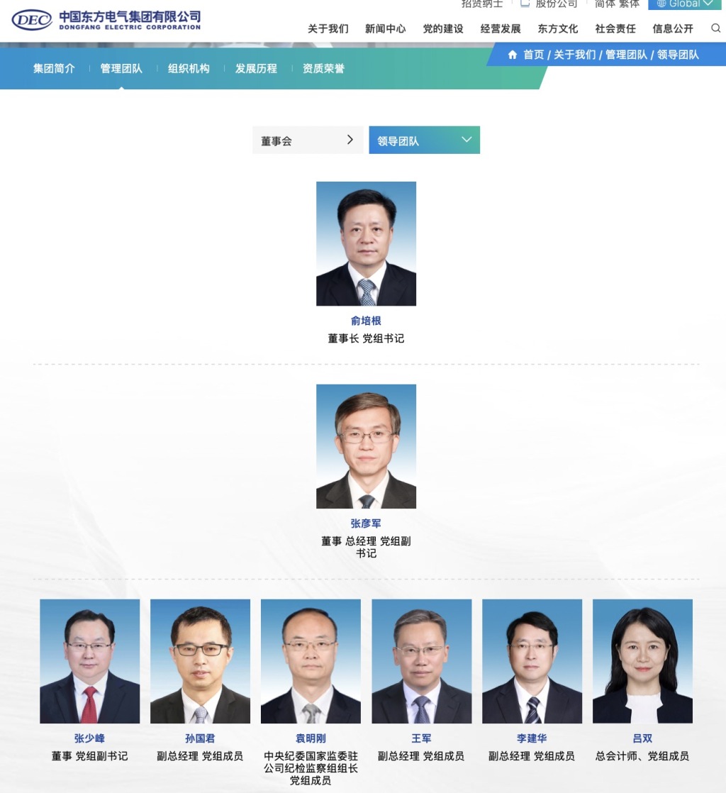 东方电气董事长俞培根的职务信息已从公司官网撤下