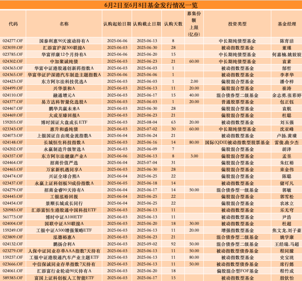 值得一提的是,QDII基金时隔10周后再度开启募集,为1只投向恒生科技指数的股票型基金。