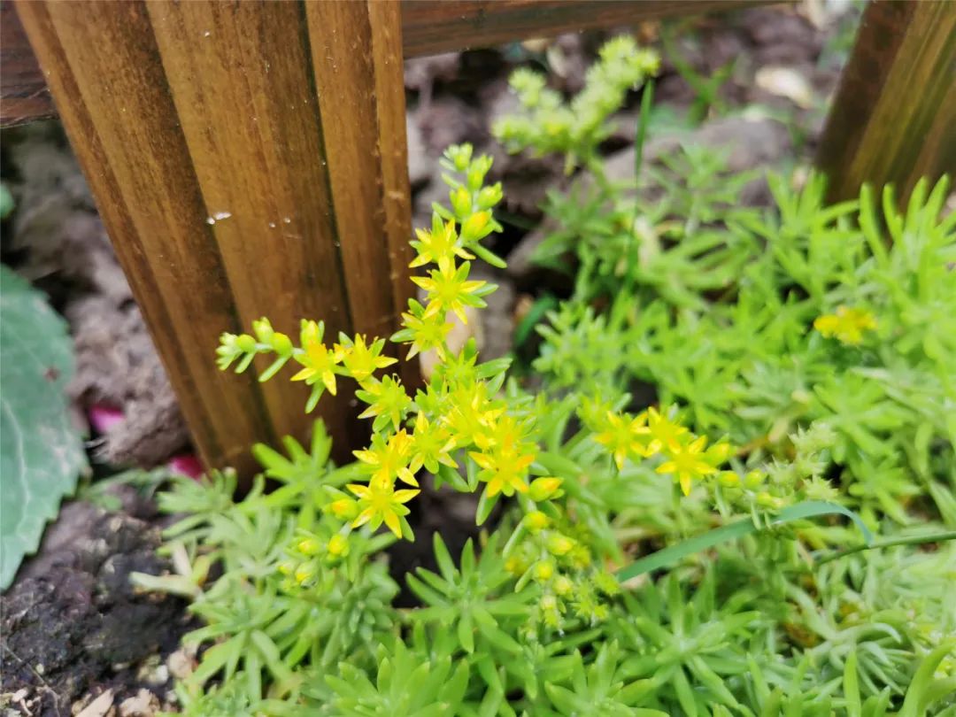 “JING美步道”靠近剑河家苑小区边门,连接着社区与又见邻里好集市。可以看到,步道设置了石板小径,周边以防腐木栅栏作围挡,两侧种植了佛甲草、月季花、绣球花、罗汉松等植物和花卉,一片生机盎然。