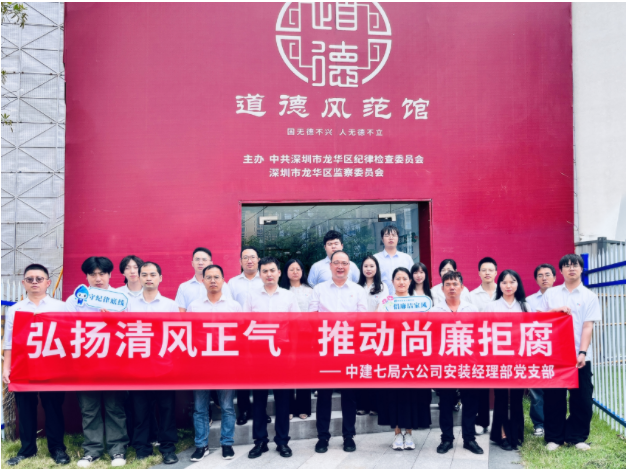 为进一步增强党员干部廉洁自律意识,筑牢拒腐防变思想防线,5月30日,中建七局六公司安装经理部组织党员干部、关键岗位和青年员工代表20余人前往龙华区道德风范馆开展警示教育的活动。