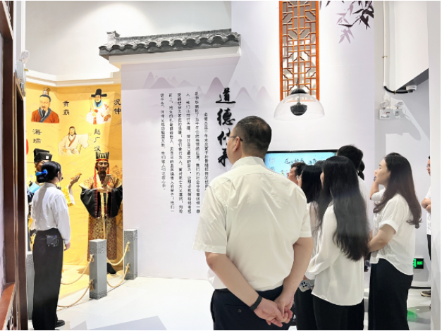 活动伊始,全体人员在讲解员的引导下参观了道德风范馆主题展厅。展馆通过图文展板、实物展示、影像资料和互动体验等形式,生动呈现了中华传统廉政文化和焦裕禄、黄文秀等优秀党员的廉洁奉公精神。大家认真聆听讲解、相互交流,深刻感悟“德以修身、廉以养德”的价值内涵。随后,全体人员集中观看了《蚁贪之害—基层干部违法违纪案件警示录》。影片以真实案例为镜鉴,剖析了个别党员干部理想信念滑坡、底线失守的蜕变过程,发人深省。