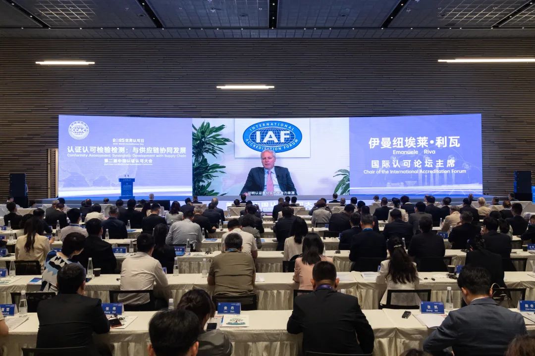 罗文在致辞中指出,认证认可作为市场经济的基础性制度,为全球贸易和经济循环提供通行证。中国始终以开放生态提供市场机遇,以合作理念搭建共赢平台,以创新思维激发发展动力,坚定维护全球产业链供应链稳定畅通。当今世界已形成你中有我、我中有你的产业共生格局,各方都是全球合作链条中的一环。我们愿与各方并肩携手,共绘认证认可新篇章,通过创新赋能、协同服务、开放互认,推动全球贸易合作与高质量发展。