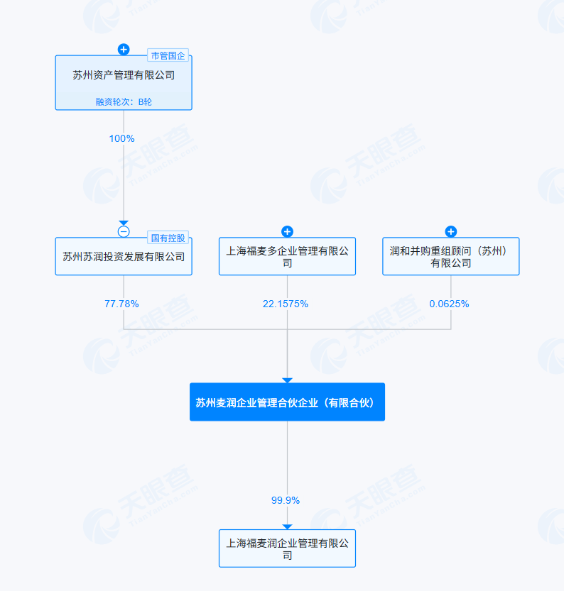 天眼查资料显示,该公司由苏州麦润企业管理合伙企业(有限合伙)实际控制,穿透股权信息来看,该公司由苏州的国企苏州资产管理有限公司控制。