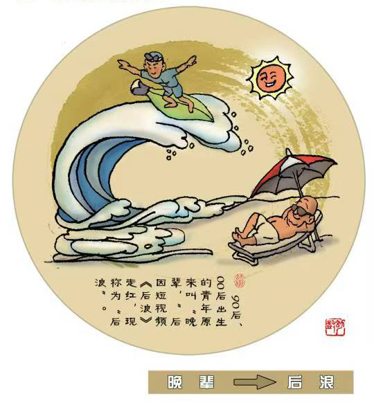 90后、00后出生的青年原来叫“晚辈”,后因短视频《后浪》走红,现称为“后浪”