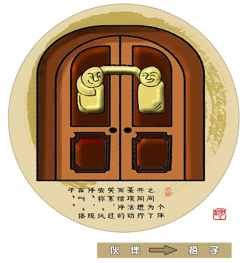 个体之间为了共同进行某项活动而结伴的关系,过去称“伙伴”,现在叫“搭子”