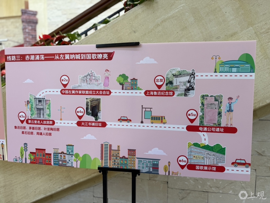 从上海鲁迅纪念馆、上海鲁迅故居出发,“红色印记——循鲁迅足迹 传左翼精神”“以文会友——左翼旗手的文学与友谊”“赤潮涌荡——从左翼呐喊到国歌嘹亮”三条红色研学路线,串联起左翼文化运动在上海留下的痕迹。6月6日,为纪念中国共产党所领导的左联、社联等左翼文化团体成立95周年,“时代强音——中国左翼文化运动文物史料展”在上海鲁迅纪念馆开幕。这是国内首次用文物和史料全景式描绘中国左翼文化运动恢宏景象的大展,三条“时代强音——左翼文化运动上海主题游径”在开幕式上发布。