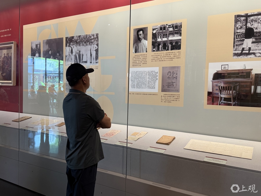 展览第一部分“发轫于上海”,从纪念馆大堂开始“走入”历史。施晨露摄
