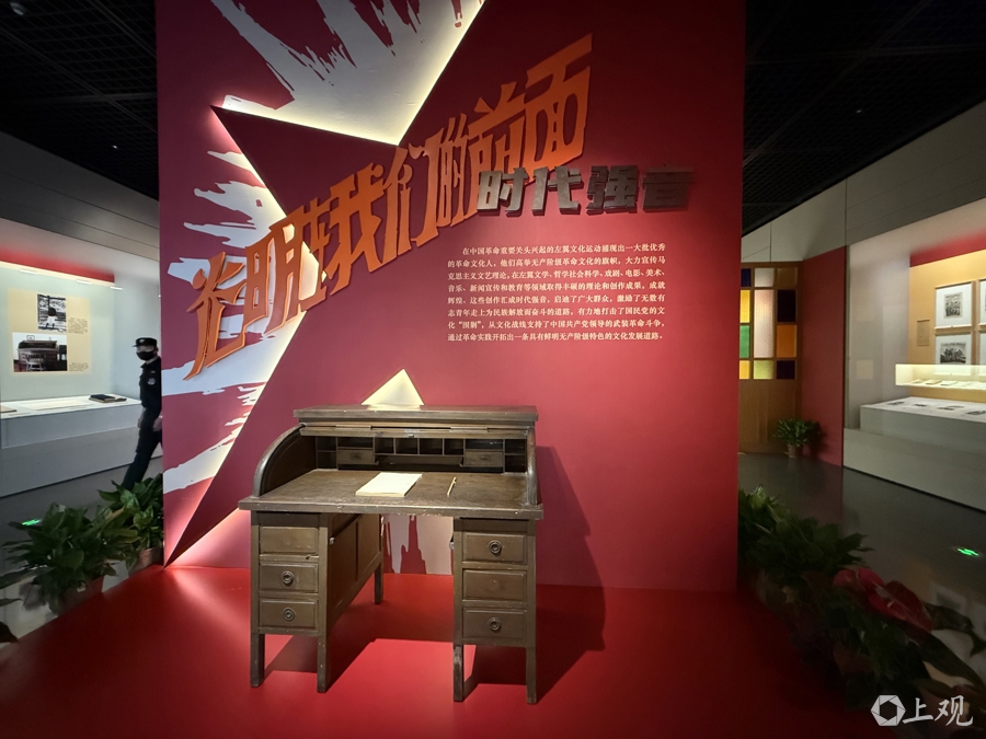 展览现场的这张书桌为瞿秋白寄存鲁迅家中的遗物复制品。施晨露摄