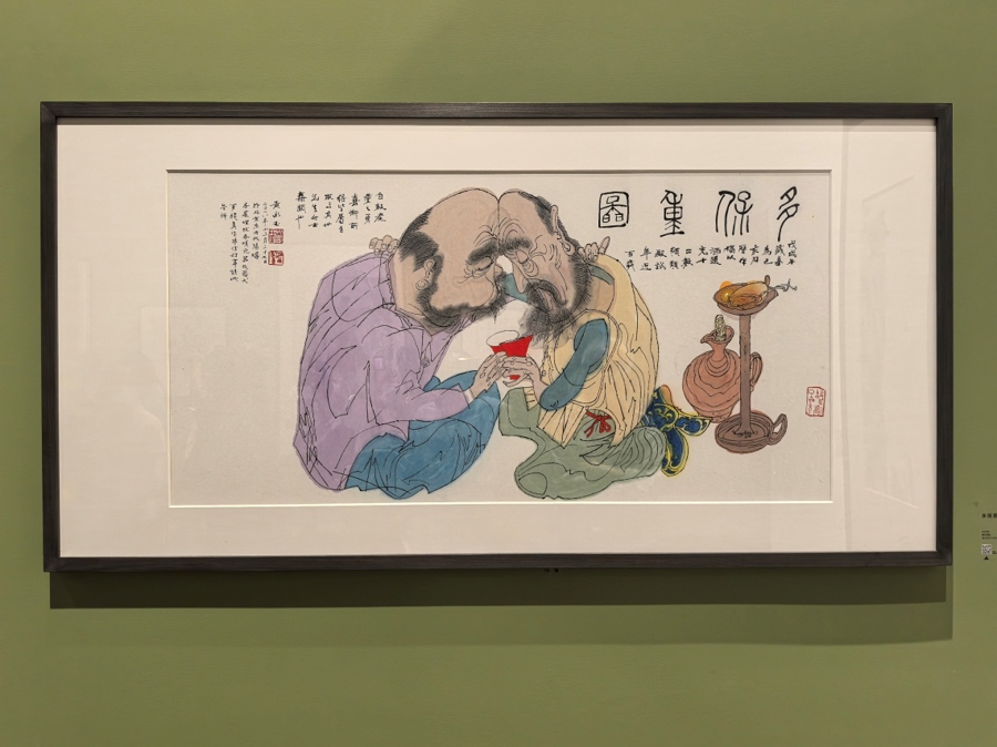黄永玉的作品如同一面多棱镜,折射出人间百态,作品呈现的“黄氏幽默”,透着犀利、辛辣,甚至荒诞的独特味道。展厅之内,常可见三五成群的人们,围聚在画作前,指着画中的诙谐之处,脸上洋溢着会心的笑意。