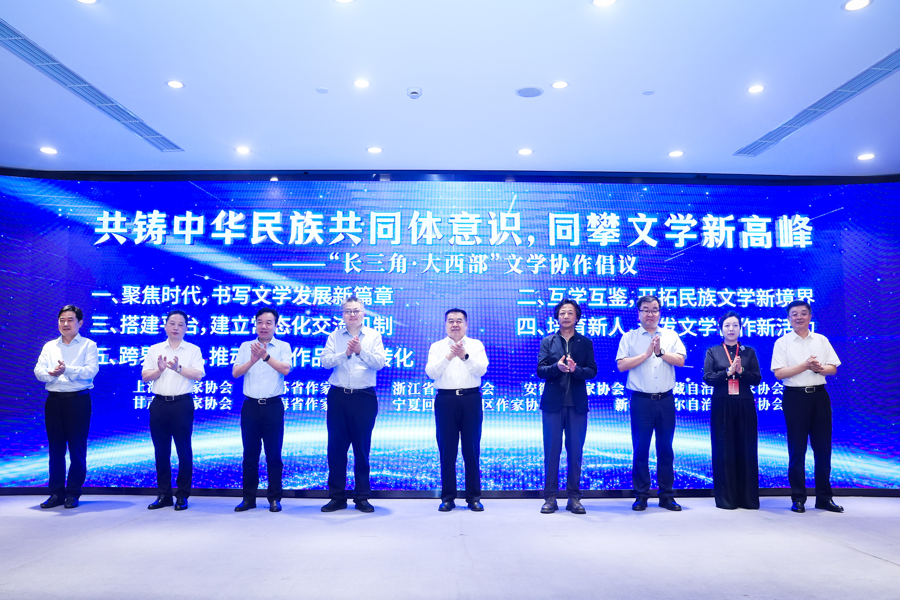 以“共铸中华民族共同意识,同攀文学新高峰”为主题的2025“长三角·大西部”文学周6日启幕。在未来的一周时间里,将有6场系列座谈会、3场作家新作分享会、1场诗歌朗诵会,多位茅盾文学奖获得者、骏马奖获得者将分享他们的创作心得和对时代的深刻洞察。第一届上海-西部作家班中,50位来自西藏、甘肃、青海、宁夏、新疆的作家将进行为期一周的专业学习。上海市作家协会党组书记、专职副主席马文运介绍,东西部9个作家协会发布共同倡议:聚焦时代,书写文学发展新篇章;互学互鉴,开拓民族文学新境界;搭建平台,建立常态化交流机制;培育新人,激发文学创作新活力;跨界融合,推动文学作品多元转化。