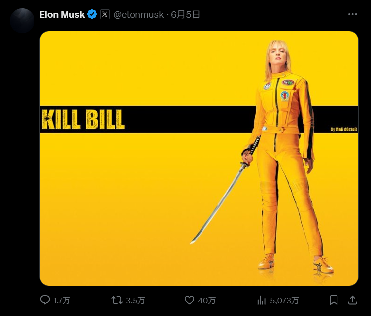 在另一篇帖子里,他还发布了一张知名电影《杀死比尔》的海报,意思是“杀死法案”(Kill the Bill)。
