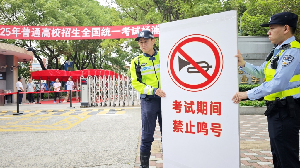 高考外语听说测试期间,上海警方严查考点周边道路机动车违法鸣号行为