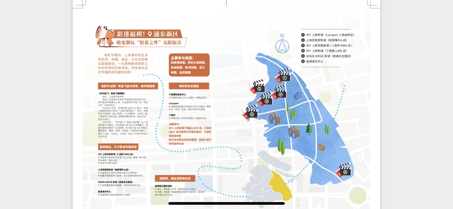 纸质版正在加紧印刷中,将于电影节开幕前摆放到各展映影院的显著位置。提前翻阅这份“生活手册”印刷小样,发现“影院生活地图”就是各区6月文化娱乐生活的实用指南。