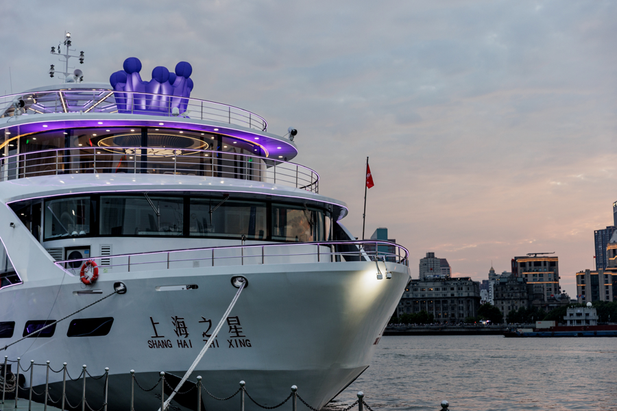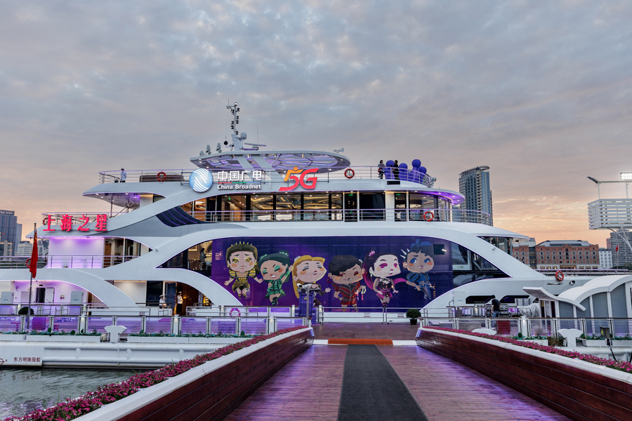 6月6日晚,“SIX上海之星”主题航班“漂浮的皇后乐园”在黄浦江首航,整座游轮由内到外,都化身一座巨大的SIX主题皇后乐园。被紫色灯光渲染的船体本身,成为浦江亮丽的风景线,位于船舱的闪耀舞台,贴满皇后态度歌词的楼梯,甲板上的发光大型皇冠,限时返场的皇后座装置,令人直呼沉浸式拉满。首航当晚,船上还举办了特别的“皇后之夜”主题音乐派对,专业DJ在舱内打碟,实现了剧迷心中随音乐起舞、合唱的心愿,也为登船游客带来全新的游船体验。