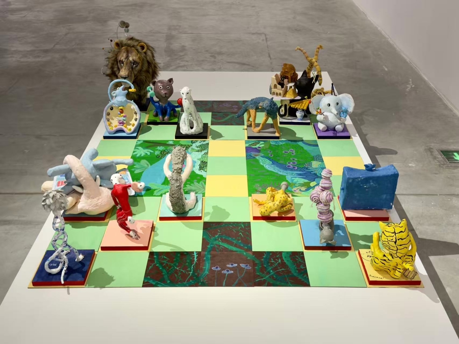 能够进入专业美术馆——上海油画雕塑院美术馆展览,也给予孩子极大的肯定与鼓励。因此,布展也十分精心,直到开幕前的最后一刻,策展团队还在为能不能在二楼的展厅空间的动物群雕作品铺上一块人工草坪而犹豫不决。