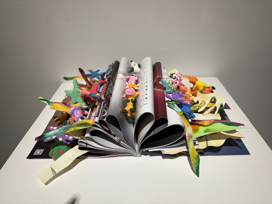 今年的“初芒计划”整体呈现更为多元丰富的特点,作品色彩更加明艳鲜亮,出现了越来越多基于儿童天性,非常大胆的艺术表达。从涵盖绘画、雕塑、综合材料、陶瓷、手工、装置、服装以及AI视频动画等多种艺术形式的1815件(组)投稿作品中遴选出的133件(组)参展作品中,装置艺术明显增多,从空中到台阶,展厅空间的每一个角落,俯拾皆是艺术作品。这些作品大多是孩子协作共创的成果,共创过程本身就是一堂生动的“团队合作课”——孩子在分工、讨论和妥协中学习如何与他人合作。更重要的是,协作共创不仅强化了孩子的自我认同,更让他们学会尊重差异,培养共情能力。这种集体创作方式,既展现了儿童艺术的独特魅力,也体现了当代艺术教育的重要价值。