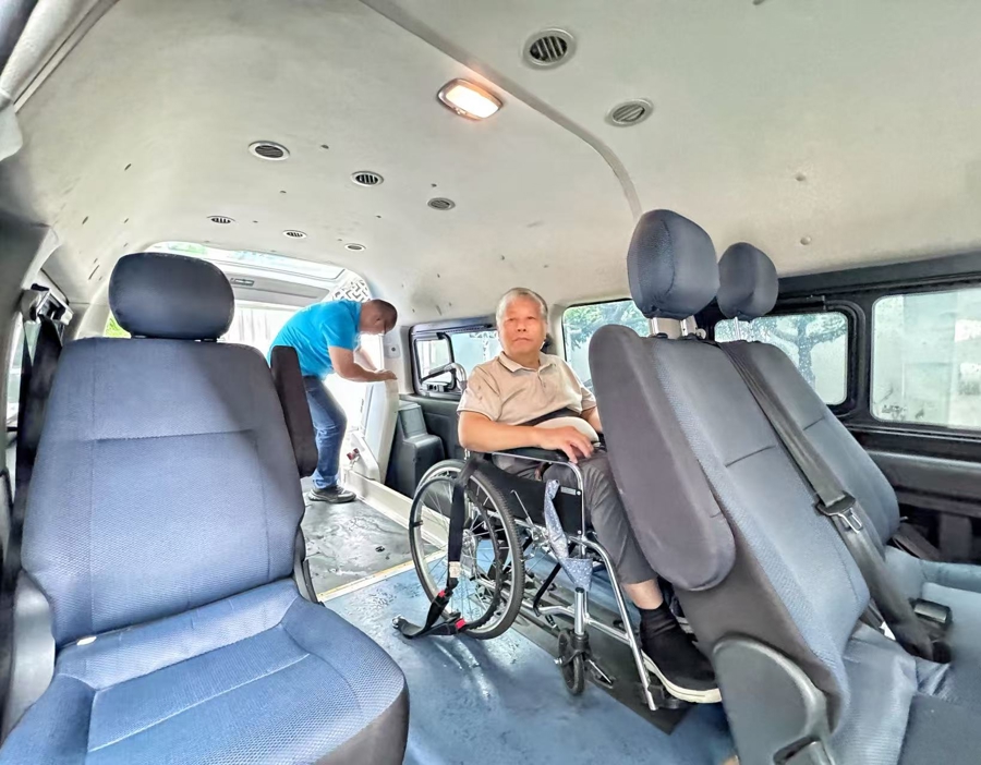 “当老人使用’爬楼机‘下楼后,配备全尺寸升降机的福祉车便开始接力,轮椅可直接推入车内,全程由专业人员操作。老人只需安稳就座,就能安全出行。到目的地后如果是楼梯房,工作人员还会帮忙送上楼。服务过程很细致,对待老年人动作也很温柔。”小费说道。