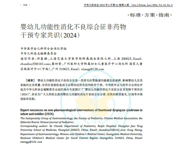 国内首份《婴幼儿功能性消化不良综合征非药物干预共识(2024)》