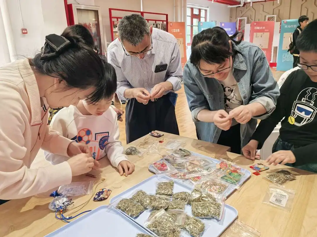 此外,现场还设置了艾草香囊DIY体验区,香气萦绕。居民们在专业老师的指导下制作香囊,在观赛之余感受传统文化。