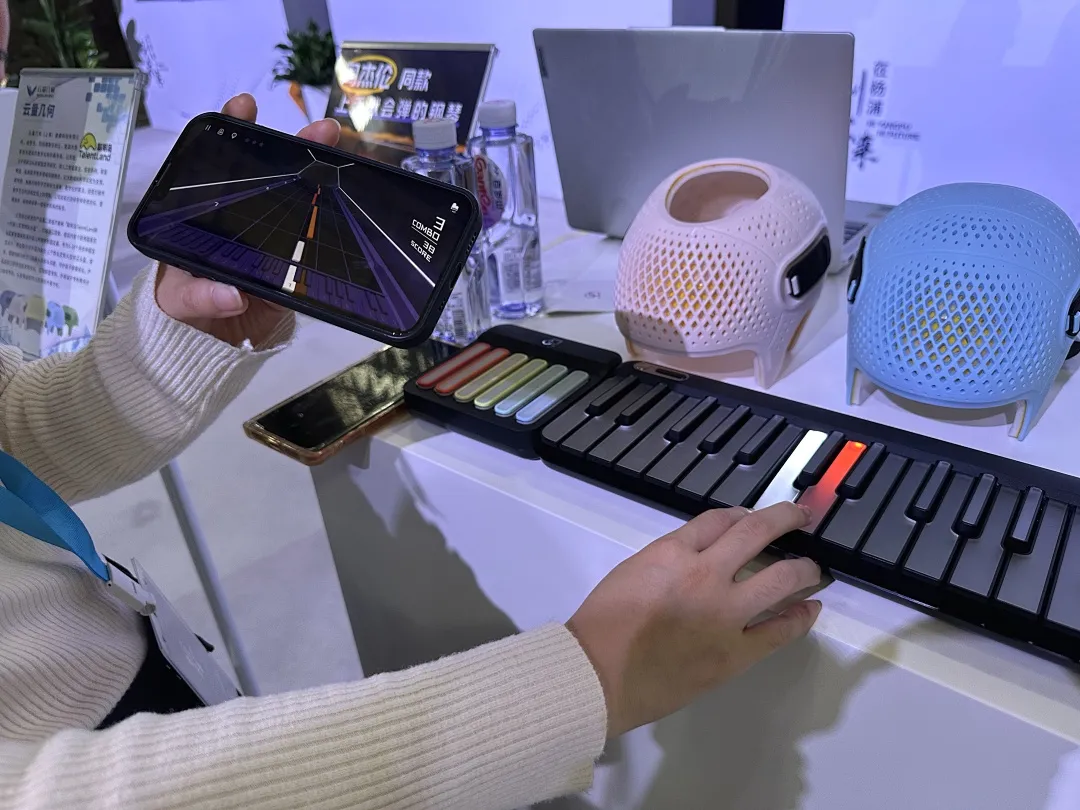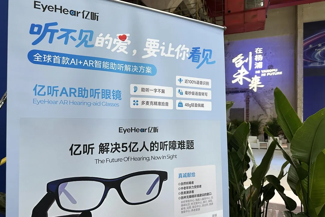 “听不见的爱,要让你看见。”吾爱数智(上海)科技有限公司带来的“亿听AR助听眼镜”则充满人文关怀。这款眼镜能将对方的话实时转为文字,显示在镜片上,帮助听障人士“看见”声音。“我们是全球首款将助听器和AR眼镜结合的AI产品,价格在五六千元,希望能帮助到更多的人。”公司负责人表示。