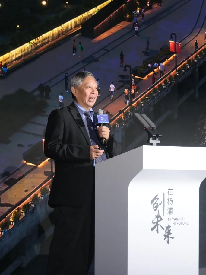 在交流分享环节,同济大学建筑与城市规划学院教授、博士生导师、同济大学超大城市精细化治理研究院院长、联合国环境规划署-同济大学环境与可持续发展学院院长、长三角可持续发展研究院院长、亚洲建筑师协会主席伍江,戴德梁行项目及企业服务部中国区总裁魏超英,阿里云智能集团时空大模型产品负责人、复兴岛全球设计大赛总策划人陈怡星分别围绕《探索转型发展模式打造人民城市典范》《海纳百川看上海产城融合聚杨浦》《建设世界创新坐标——复兴岛》作交流分享。