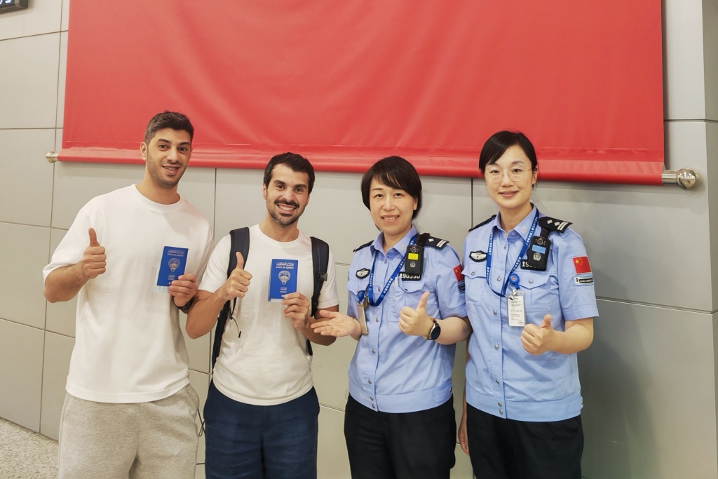 免签入境的科威特籍旅客Alyahyaa兄弟为高效的通关体验点赞。李爽 摄