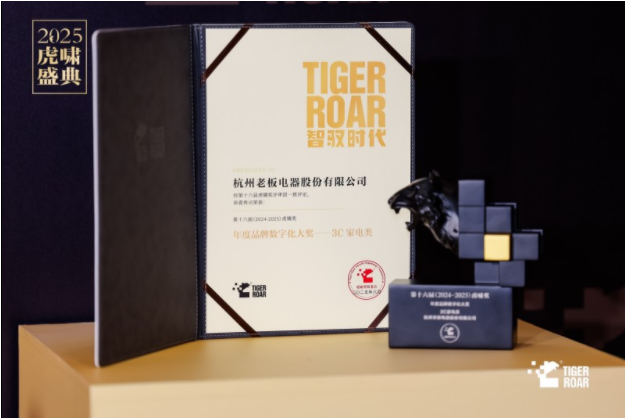 近日,在2025年度虎啸奖颁奖盛典上,国内高端厨电品牌老板电器凭借其在品牌营销数字化领域的卓越表现和战略实践,成功斩获虎啸奖“年度品牌数字大奖”。此次获奖不仅是对老板电器在数字化浪潮中锐意进取、成果斐然的权威肯定,更彰显了其作为行业标杆,在驱动厨电行业智能化升级上的强大引领力。