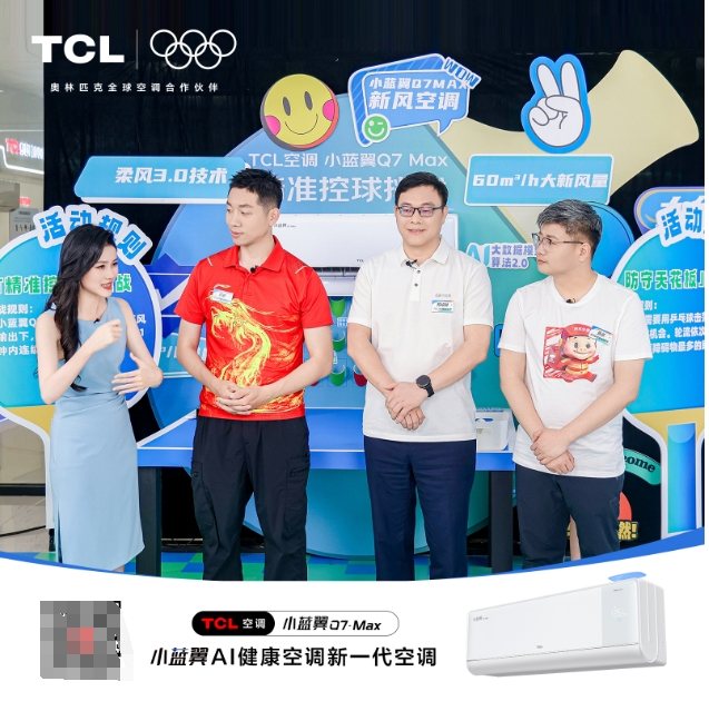 直播现场,许昕用四大高燃乒乓球挑战为TCL小蓝翼Q7 Max新风空调技术证言。第一关精准控球挑战,许昕和陈总、张京总两位嘉宾在TCL小蓝翼Q7 Max新风空调800m³/h的飓风战场上,直面强风逆风击球入洞,同时感受柔风功能开启前后的击球力度及发球轨迹变化,来验证 800m³/h的超大循环风量。 第二关无声乒乓球挑战,许昕在仿佛静音深渊的专业级实验室,挑战超低分贝极限颠球,同时与TCL小蓝翼Q7 Max新风空调运行16dB的超静音对比, 现场把TCL小蓝翼Q7 Max空调运行声音称之为“比呼吸更轻”的深海静音!在第三关病毒歼灭战中,许昕携手两位嘉宾,分别用乒乓球击落象征PM2.5、病毒、粉尘、毛发等,来生动展现TCL小蓝翼Q7 Max新风空调的五重滤网净化功能。第四关新风净化大挑战中,开启TCL小蓝翼Q7 Max的新风功能,挑战10分钟将透明玻璃房内CO₂浓度从3000ppm降至800ppm,引爆弹幕 “毒气逆转”“比魔术更狠”! 现场许昕的收官宣言“健康呼吸是永恒的冠军” 引发百万用户共鸣!